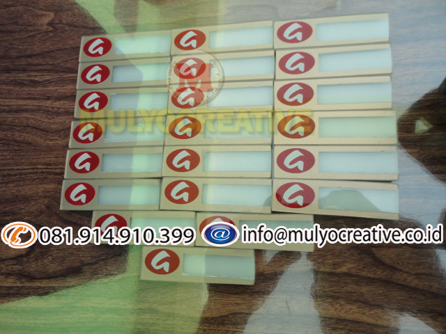 Mulyo Creative menerima pemesanan pembuatan dan menjual papan nama dada dengan harga yang di sesuaikan dengan desain pemesanan.
