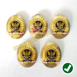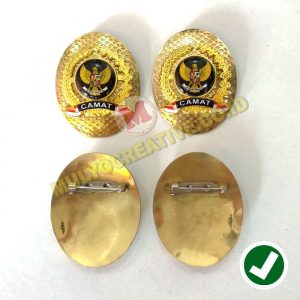Mulyo Creative menjual dan terima order pembuatan macam-macam perlengkapan dan aksesoris dengan kualitas terbaik dan harga yang murah. Salah satu yang kami jual adalah Pin logo camat dengan lambang padi dan kapas yang melambangkan pangan dan sandang, syarat pokok kemakmuran. Bagian belakang pin ini menggunakan pengait peniti.