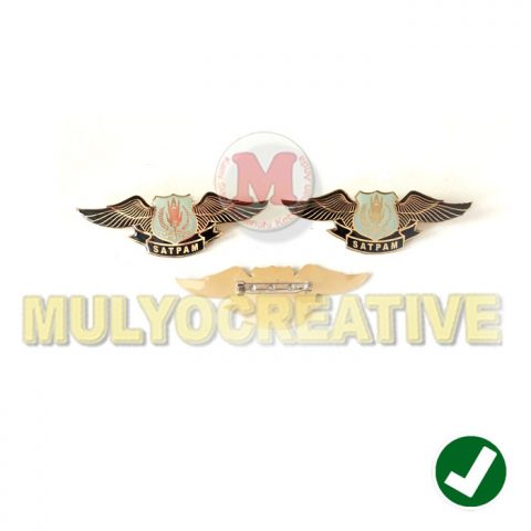 Mulyo Creative sedia, jual dan terima order pembuatan Lencana Wing SATPAM Bahan Logam Kuningan yang dibuat dari logam kuningan yang dilapis dengan fiber lycal resin sehingga lebih awet dan tampak eksklusif.