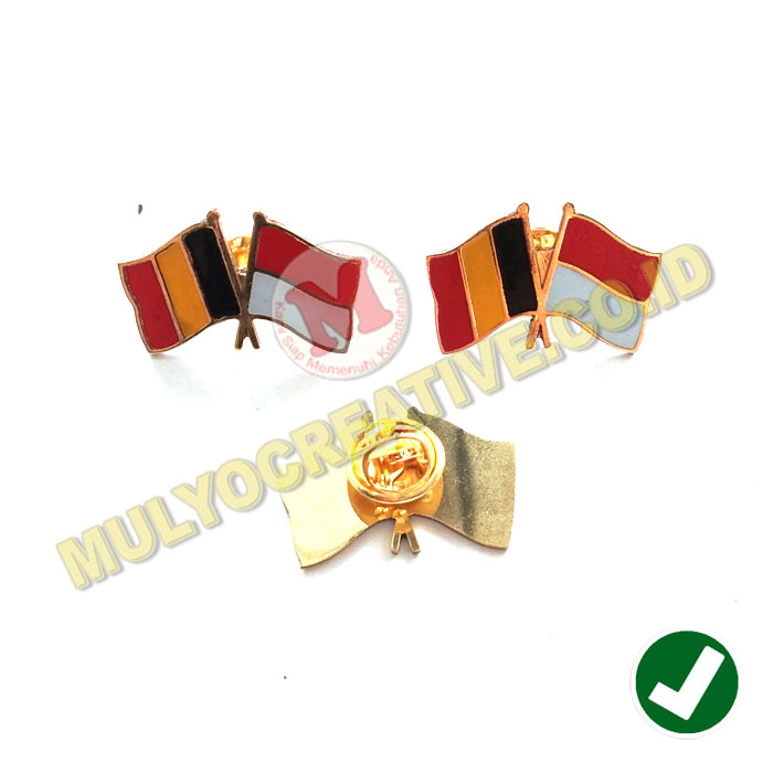 Mulyo Creative sedia, jual dan terima order pembuatan Pin Bendera Persahabatan Antar Bangsa – Flag Pin Indonesia Belgia yang dibuat dengan teknik pengolahan cor logam/diecast logam kuningan sehingga lebih awet dan tampak eksklusif.